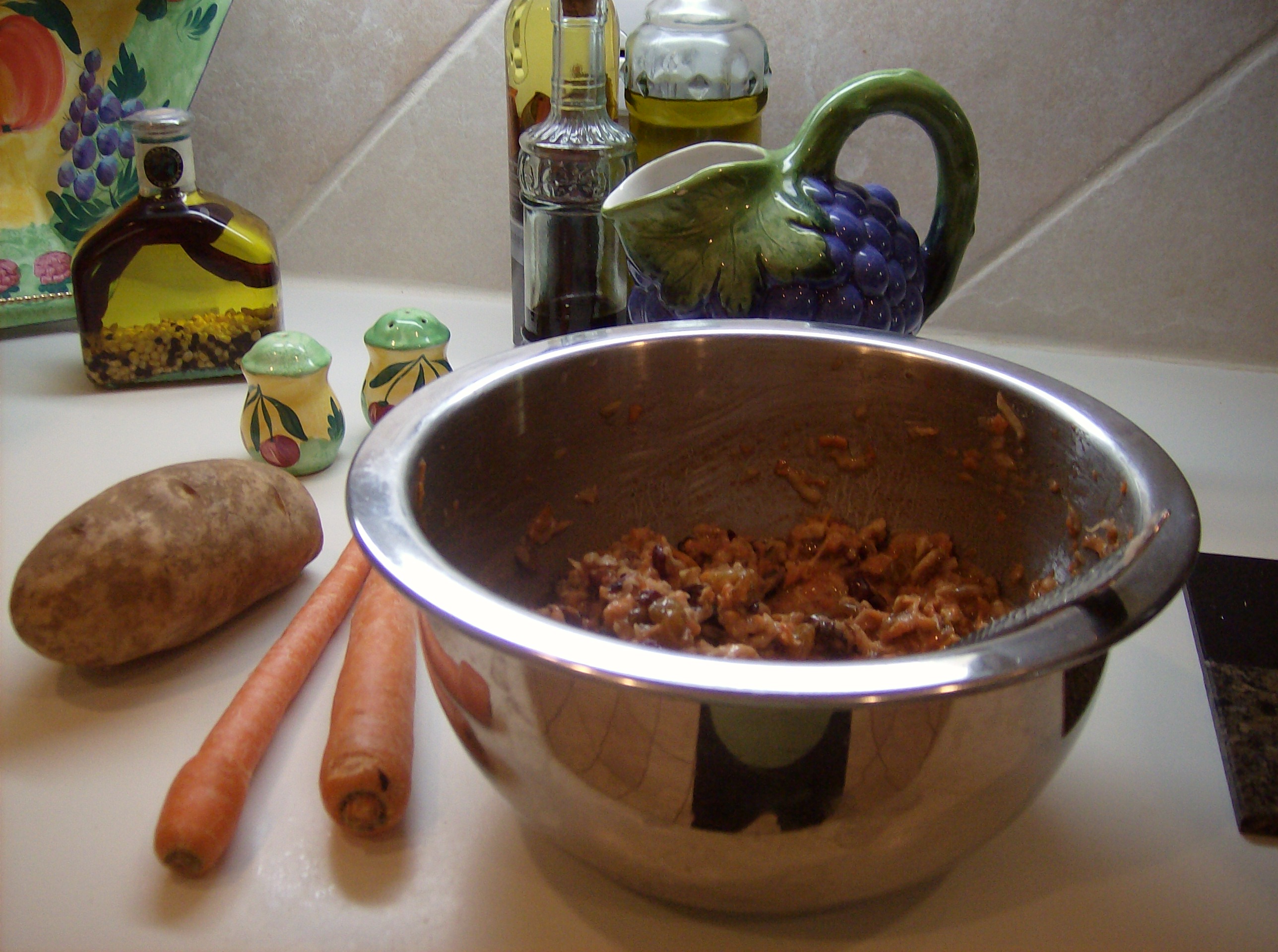 The other interesting thing about plum pudding is that it is made with grated potatoes and carrots, flour, raisins, sugar, and nuts. Very simple ingredients. Very easy to acquire. It is the kind of holiday goodie that the working class of old England could probably afford to make.