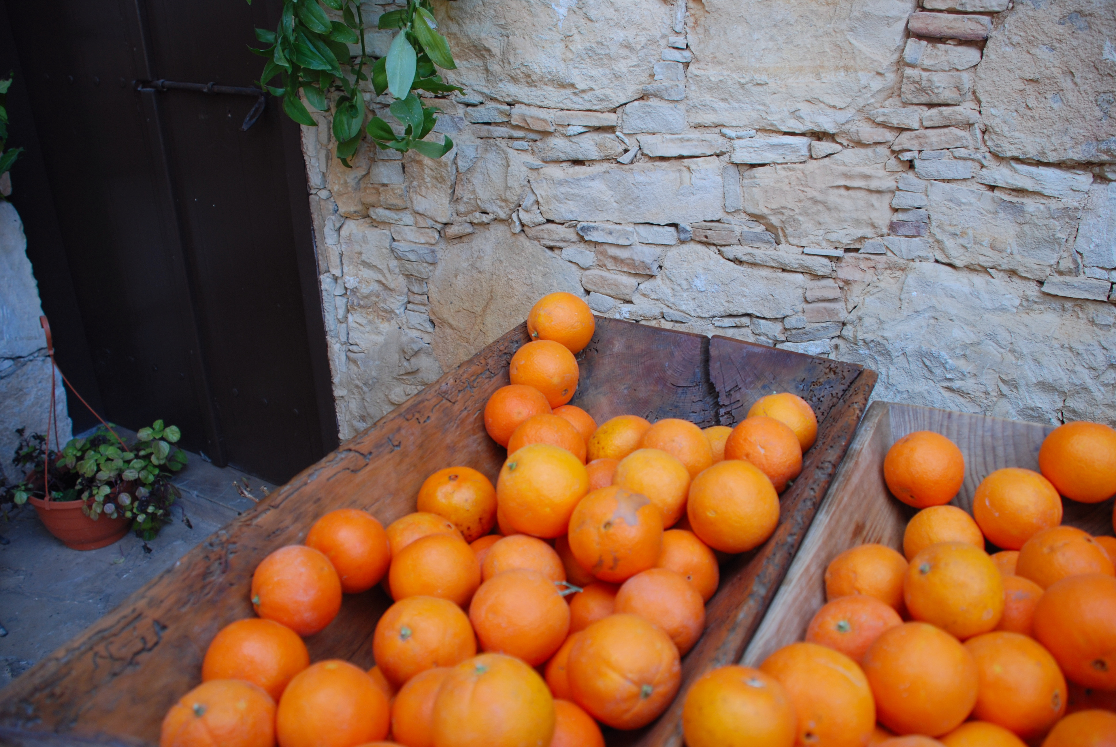 The mountain village is as quaint and sweet as these old wooden bowls of oranges in the Lofou Tavern.