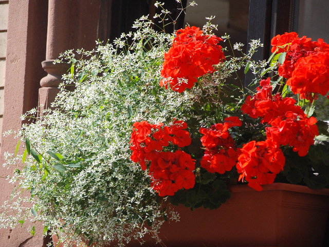 Through the years we have spent much time in Germany, but we have never traveled this wine trail. It has been so much fun and absolutely beautiful. I decided to photograph some of the myriad German flowerboxes as I go. Every house has at least three or more, so it is not hard to get a quick collection of photos.