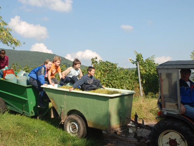 Our initial sight was a mini-truck loaded with the first-harvested grapes. It looked like the kids helped to pick the grapes. They were laughing with glee as they sat on top and brought th load into the village.