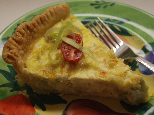 Garnish with halfed grape tomatoes and shredded, raw leek bits. Serves 8.