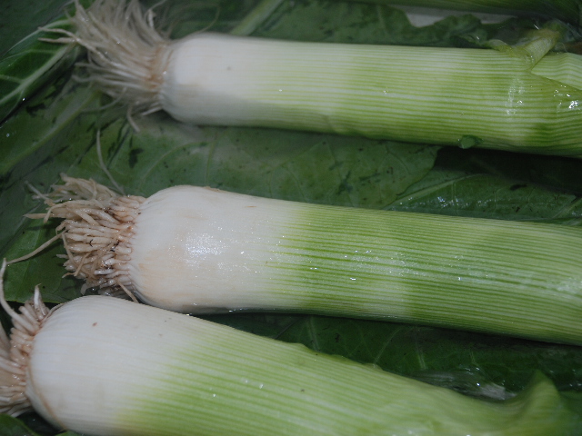Start with fresh, fat leek stalks. Wash and cut off the roots and green tails.