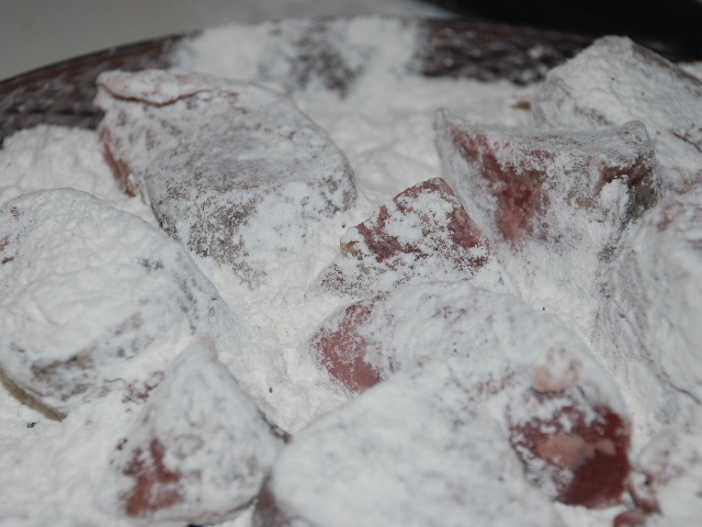 Dredge the beef cubes