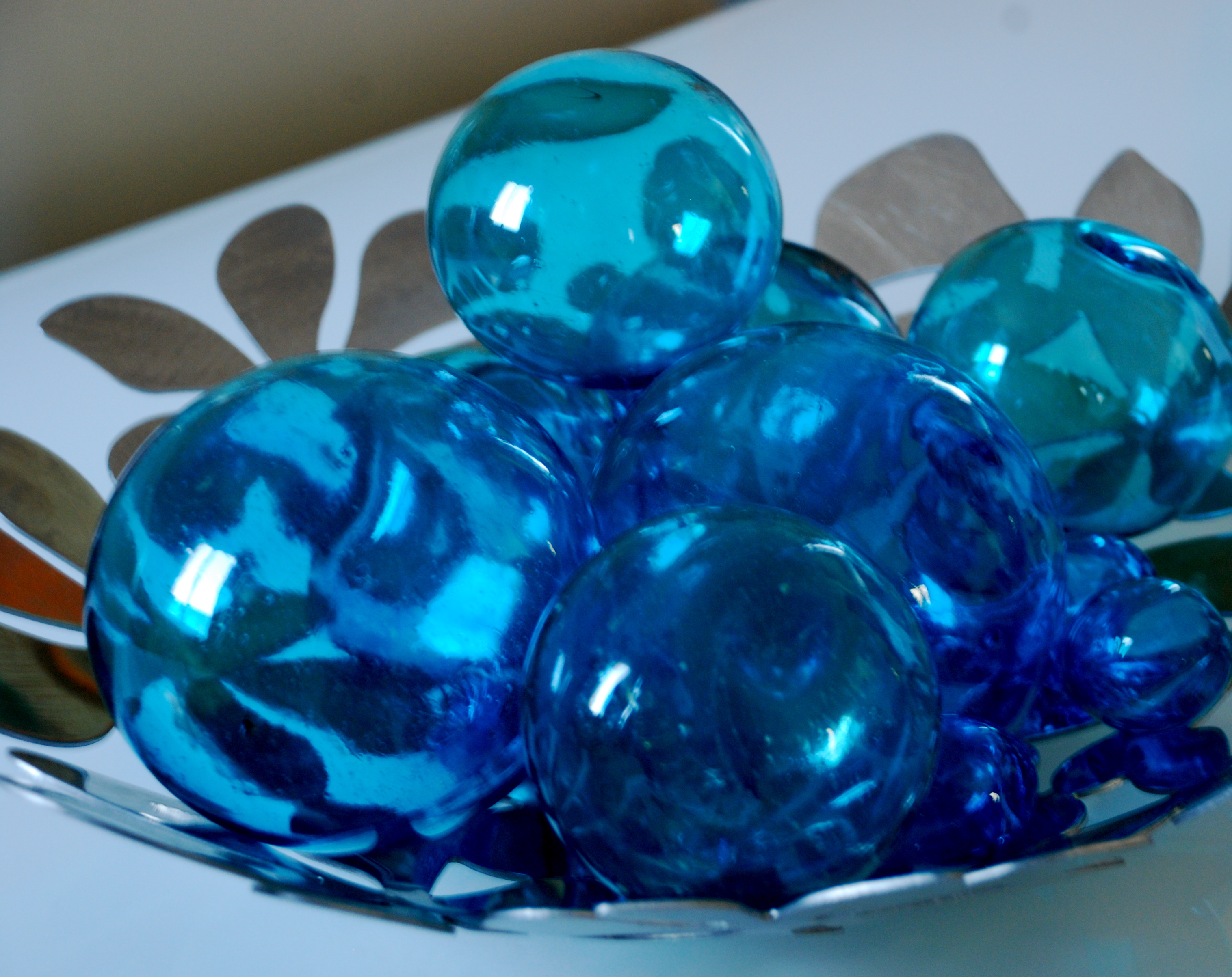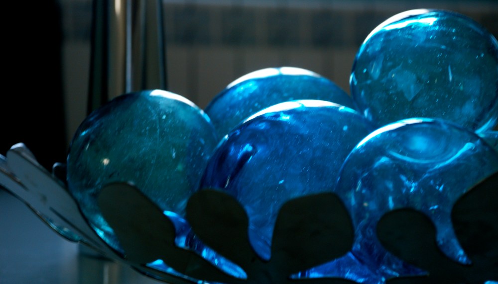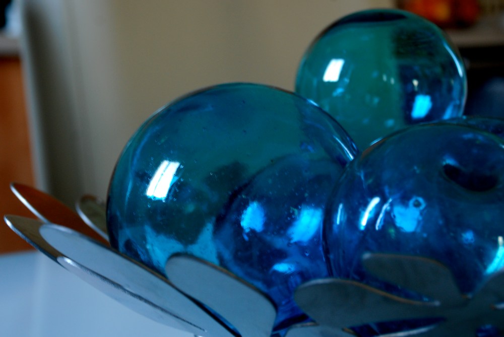 These beautiful, hand-blown glass balls grace my dining room table now…