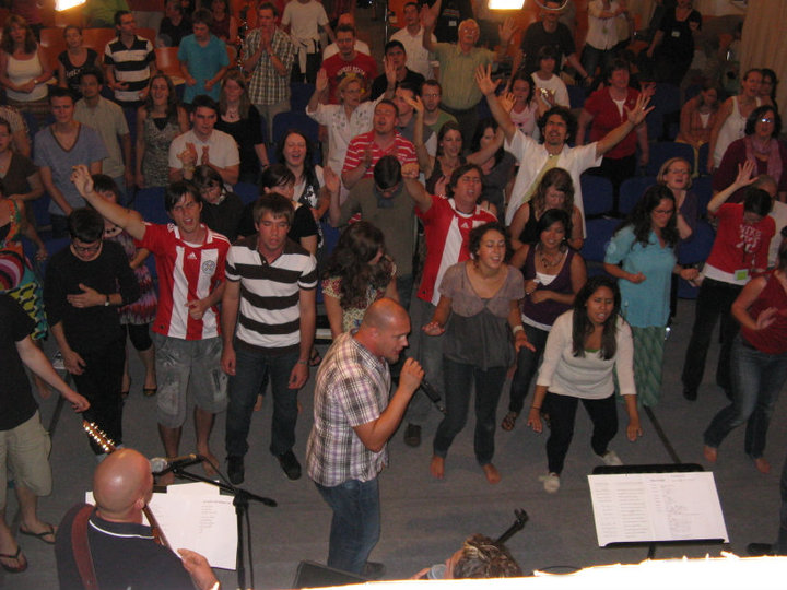 One happy thought is that my lovely daughter, who is currently in Germany on a summer outreach, will return the end of the week. Here she is during a recent worship session with her team and others.