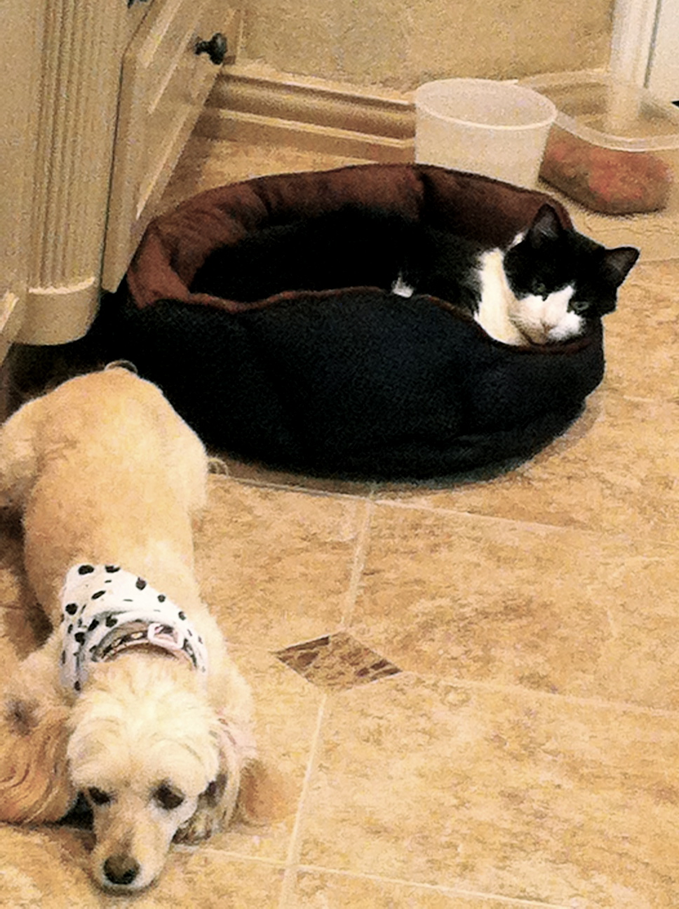 Phat Philler Phluf Who’s Been Sleeping in my Bed? Posted by Bonnie on August 30, 2010 The cat’s sleeping in the dog’s bed. The dog’s out on the floor. Ain’t nobody messing with the cat… Share this: Click to share on X (Opens in new window) X More Click to share on Facebook (Opens in new window) Facebook Click to print (Opens in new window) Print Click to email a link to a friend (Opens in new window) Email Click to share on Reddit (Opens in new window) Reddit Like Loading... Published by Bonnie View all posts by Bonnie