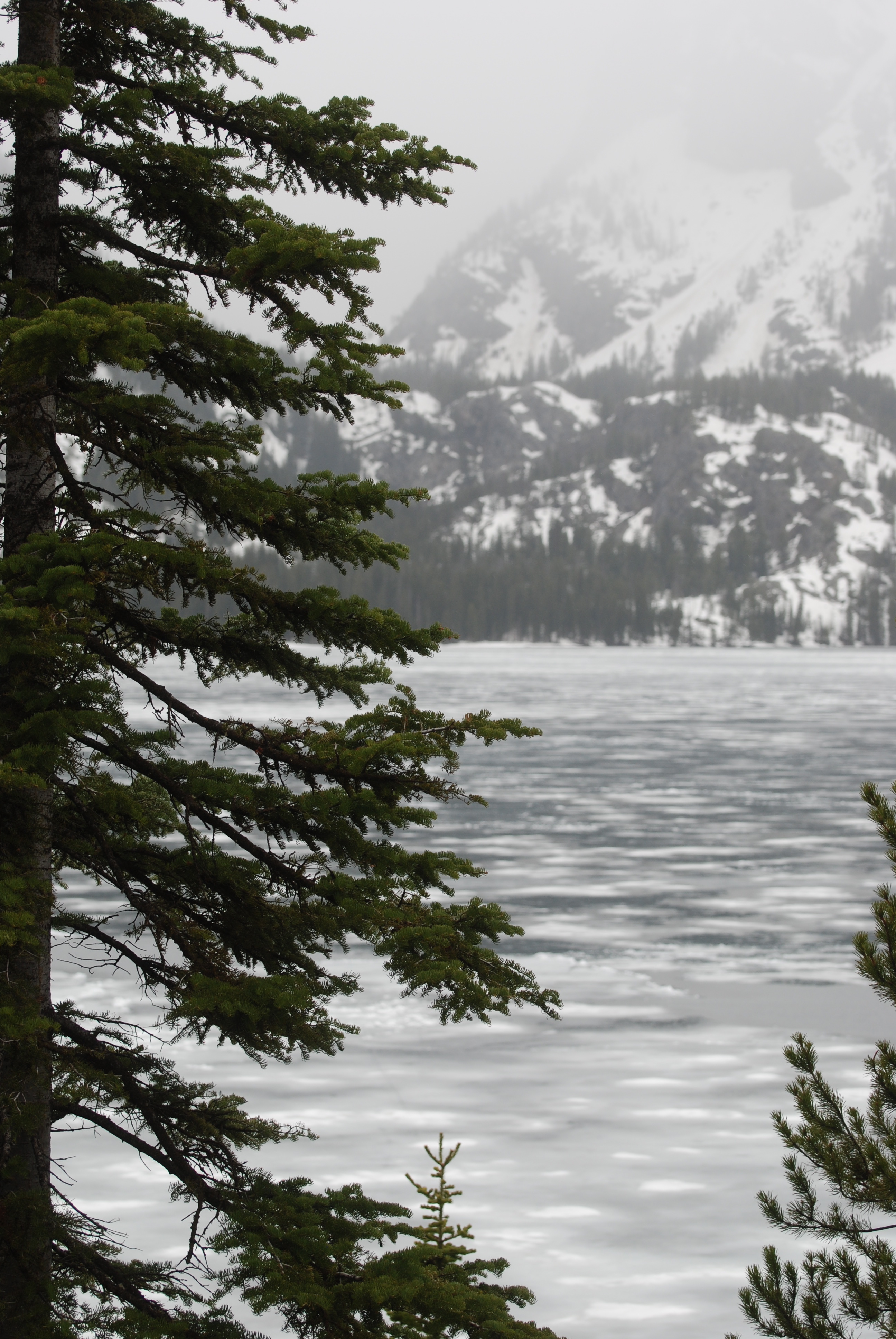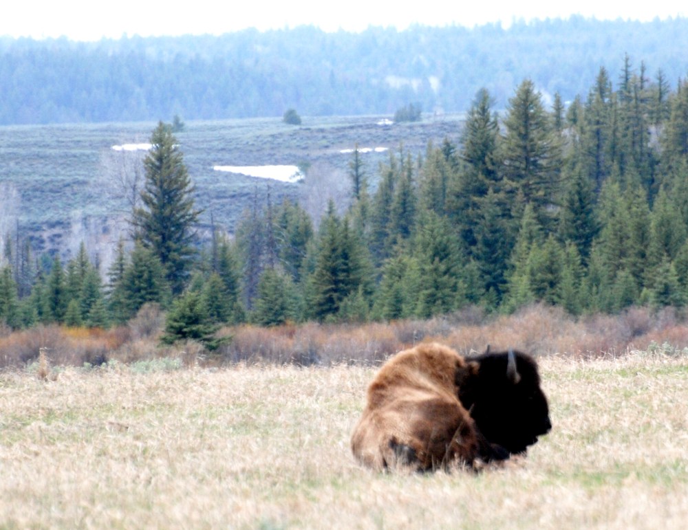 We still enjoyed our drive through the Teton National Park, Unfortunately, the cloud covering was very low; and the Grand Teton range was hidden! Oh well, it didn’t steal our joy. There was so much to see otherwise. And it is great to enjoy the beauty and chill of snow without having to plow through it.