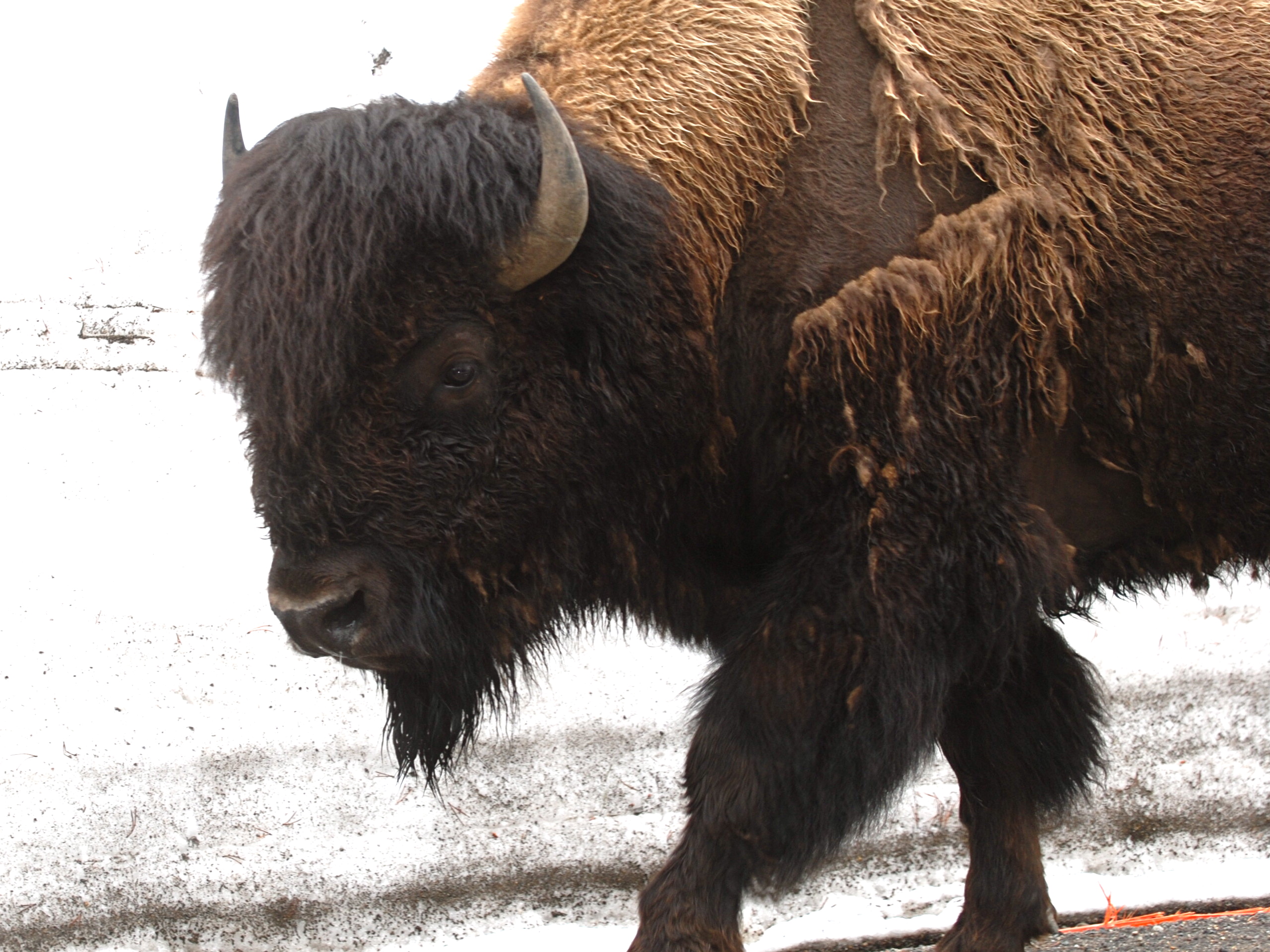 My prayer was that I would get a close up photo of a bison. I mean really, really close… like I could reach out and pet it. Well, we have seen a lot in the far distance the past two days, grazing and sleeping. But suddenly today out of nowhere three bison walked up the highway in the oncoming traffic lane literally next to our car. We stopped and could have touched them, but didn’t. We were so close you can see their eyelashes in the photo!