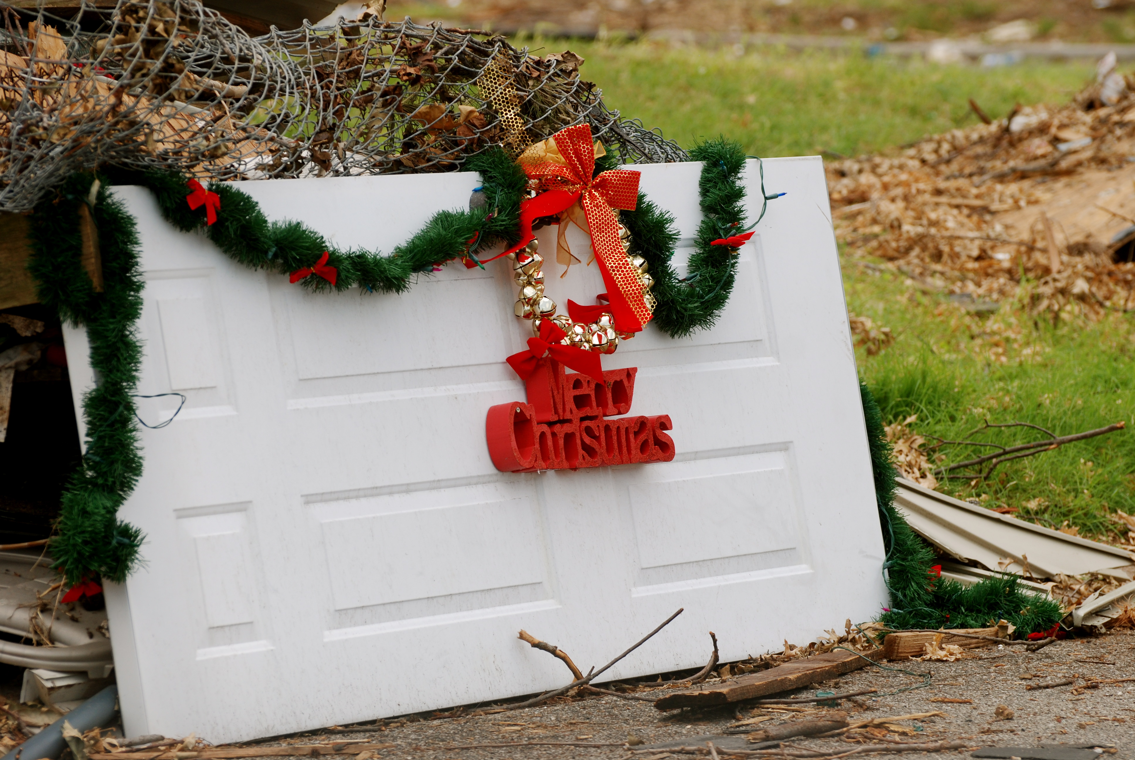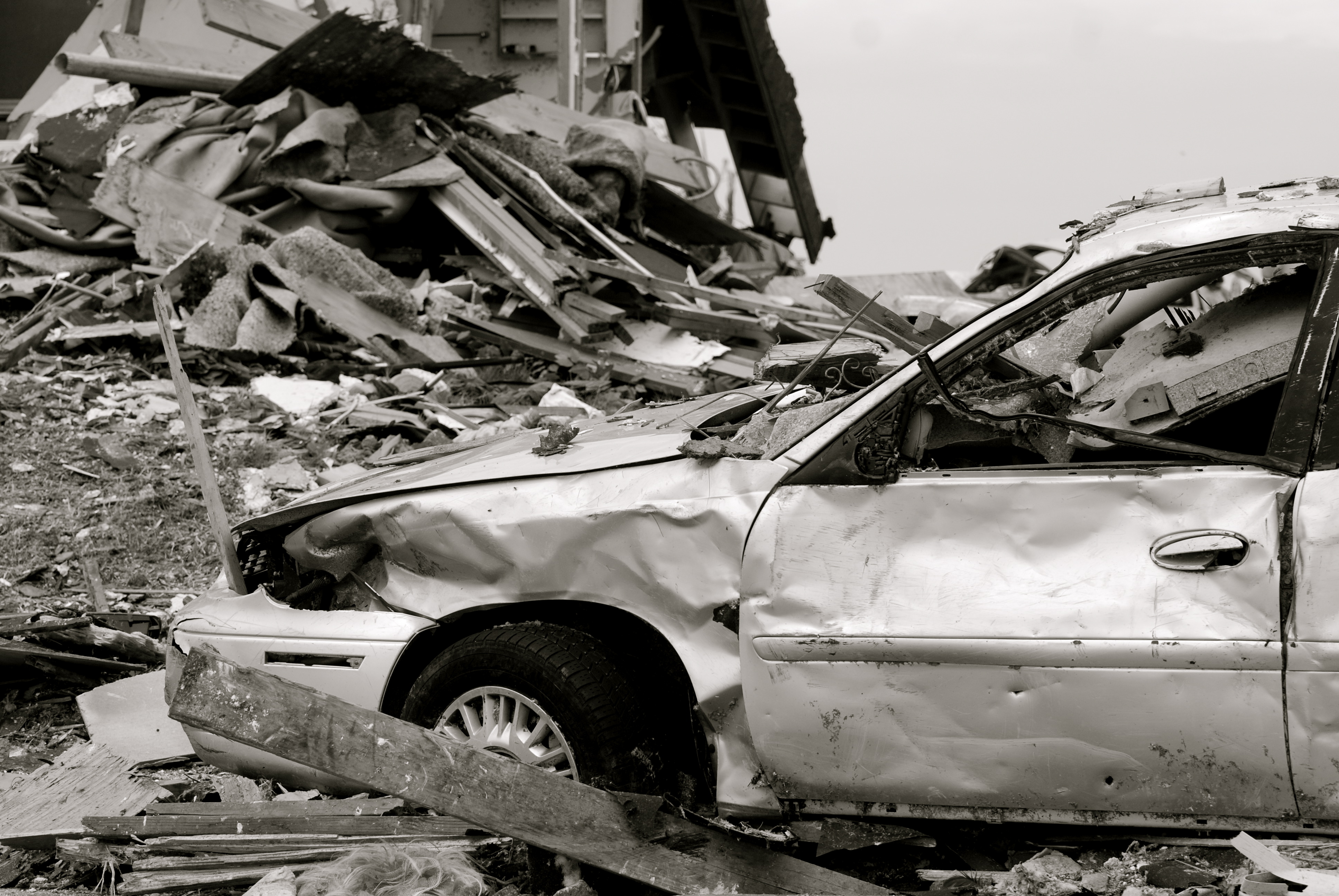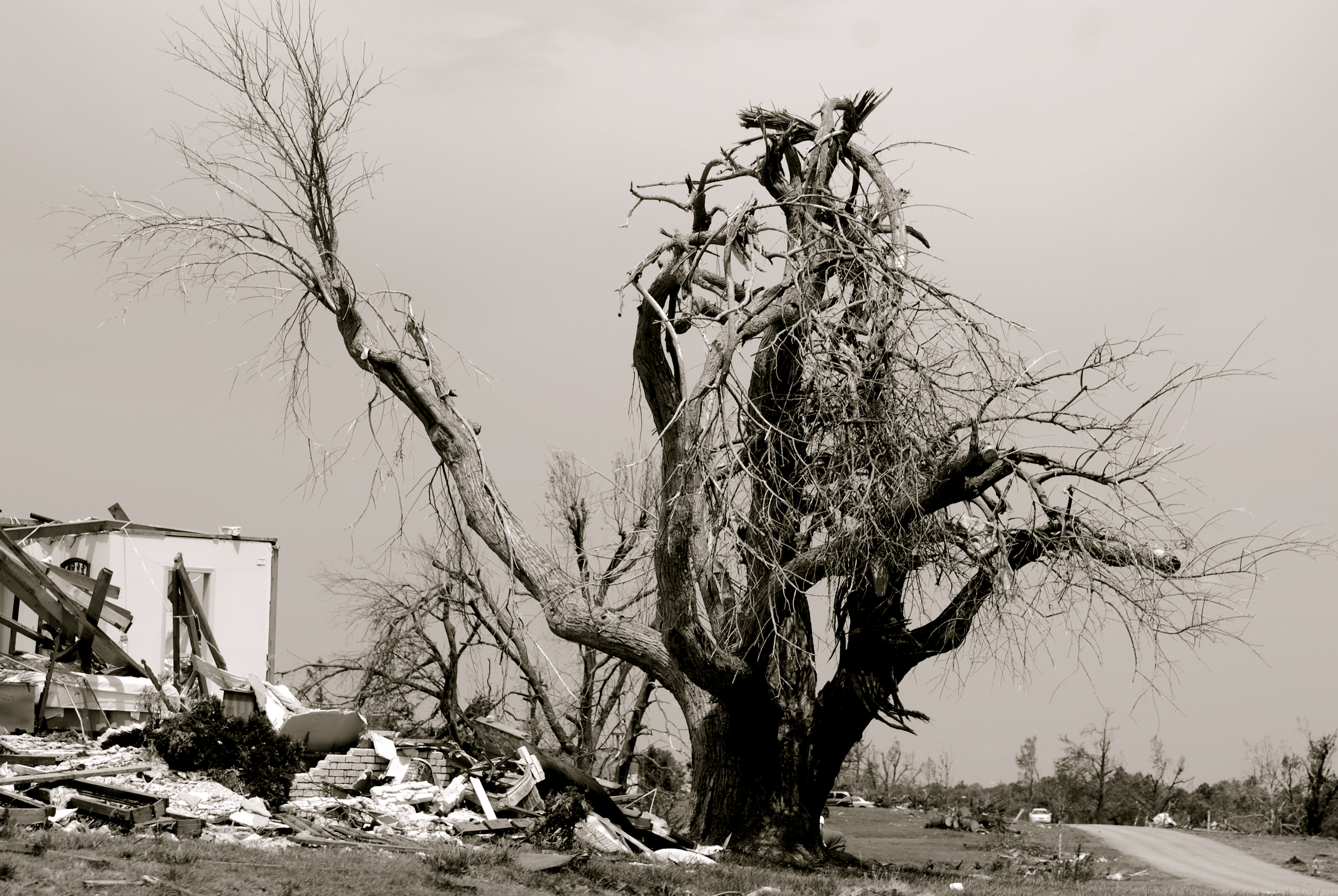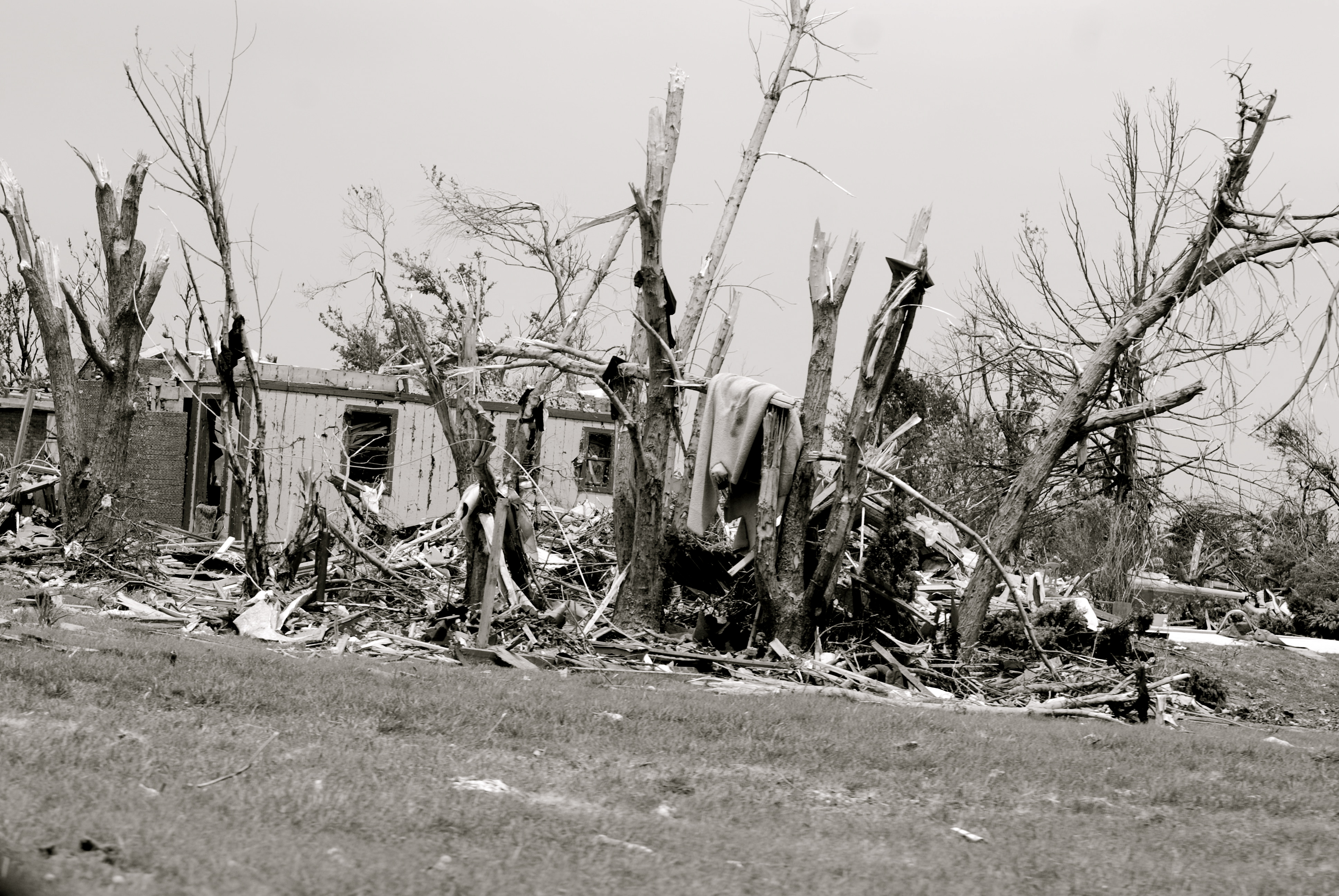 We prayed as we slowly drove up and down the city streets. We took the out-of-the-way side neighborhood lanes too. It was heart wrenching. I have never seen anything like this. It looked like war, worse than war. Metal siding is twisted around the top of trees like ribbon. Large branches broken from huge trees are pierced through cars and sticking out of apartments. The bark is stripped from the trunks of trees. Mattresses with multiple holes in them hang from tree tops like Christmas ornaments.