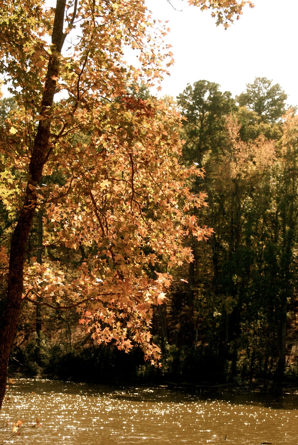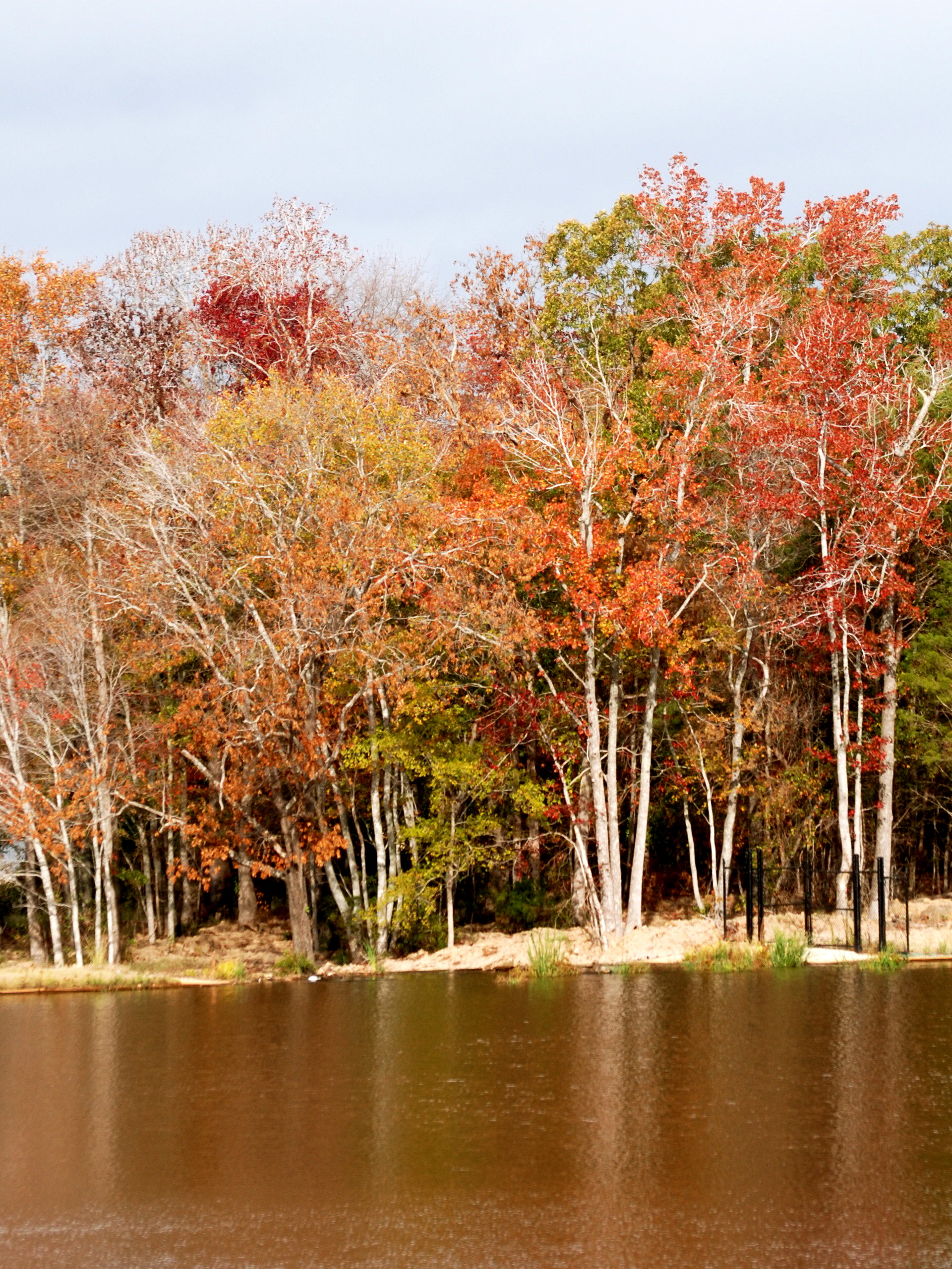 We spent two days in Tyler and one day on a lake outside of Tyler where friends have a cabin. It was very secluded and a great getaway. I love that feeling of unwinding in the wild. It was pretty remote, so the drive in and out was gorgeous. We sat by the lake, listened to the wind, dodged pelting acorns dropping from the trees, watched the sun sparkle on the water and shine through the scarlet and golden leaves. We watched the leaves drop one by one and counted our blessings. We praised the God eternal, Creator of all.