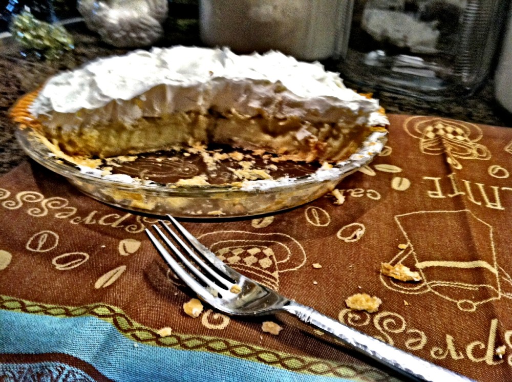 I love coconut cream pie, and since my hubby and I hosted guests from out-of-town yesterday, I wanted to make it for them. Now mind you, I am on a new year cleanse diet and enjoying it very much — already starting to feel better just after a few days. It is very limited, and coconut cream pie is not on my diet. Therefore, I have only had one bite of this pie, because I couldn’t stand not to taste it… but everyone who ate it today raved.