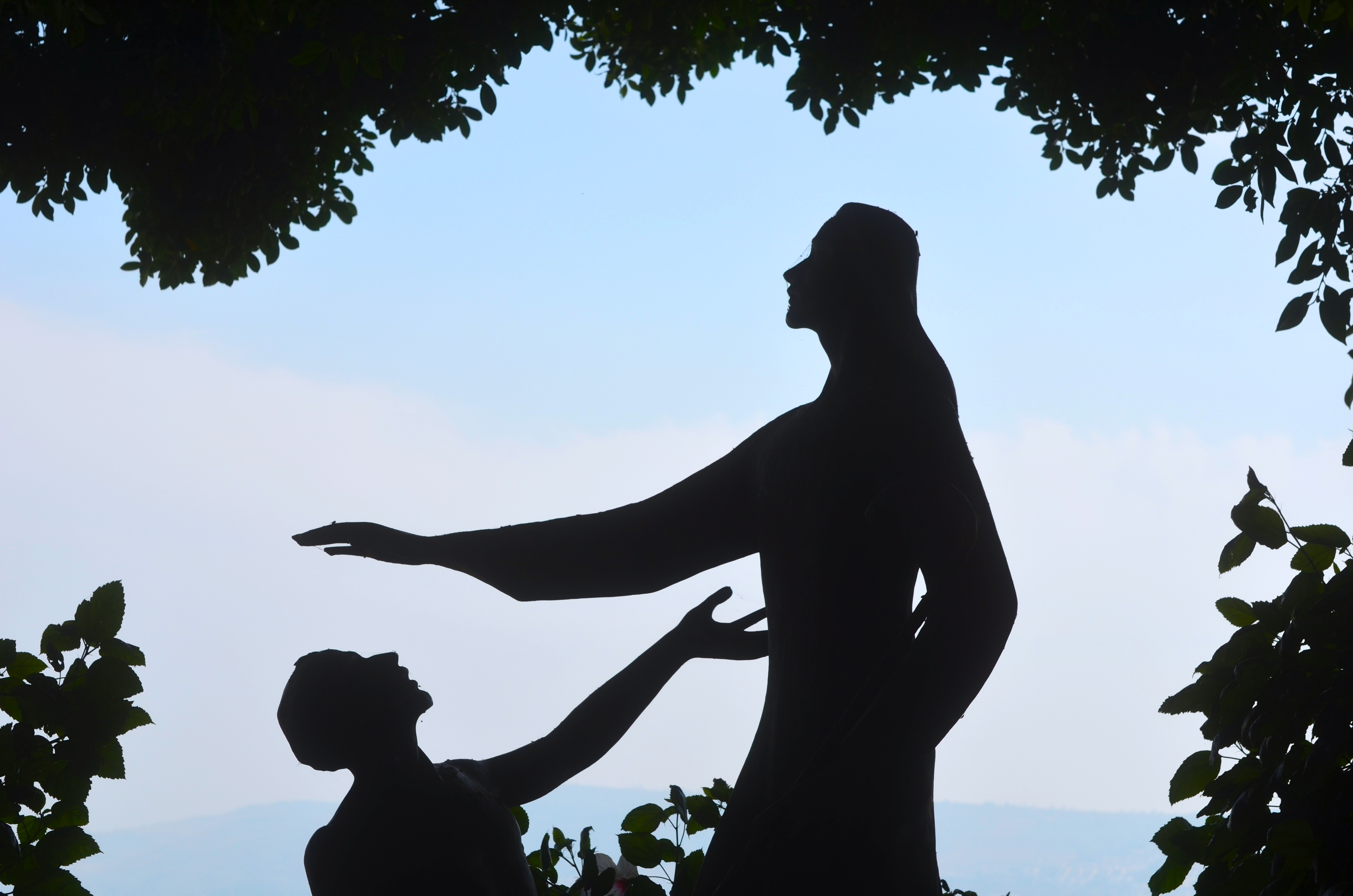 Church of the Primacy of Saint Peter on the Sea of Galilee in Tabgha, Israel. Traditional site where Jesus Christ appeared to his disciples after His resurrection. This is a statue of Jesus telling Peter to “Feed my sheep.”