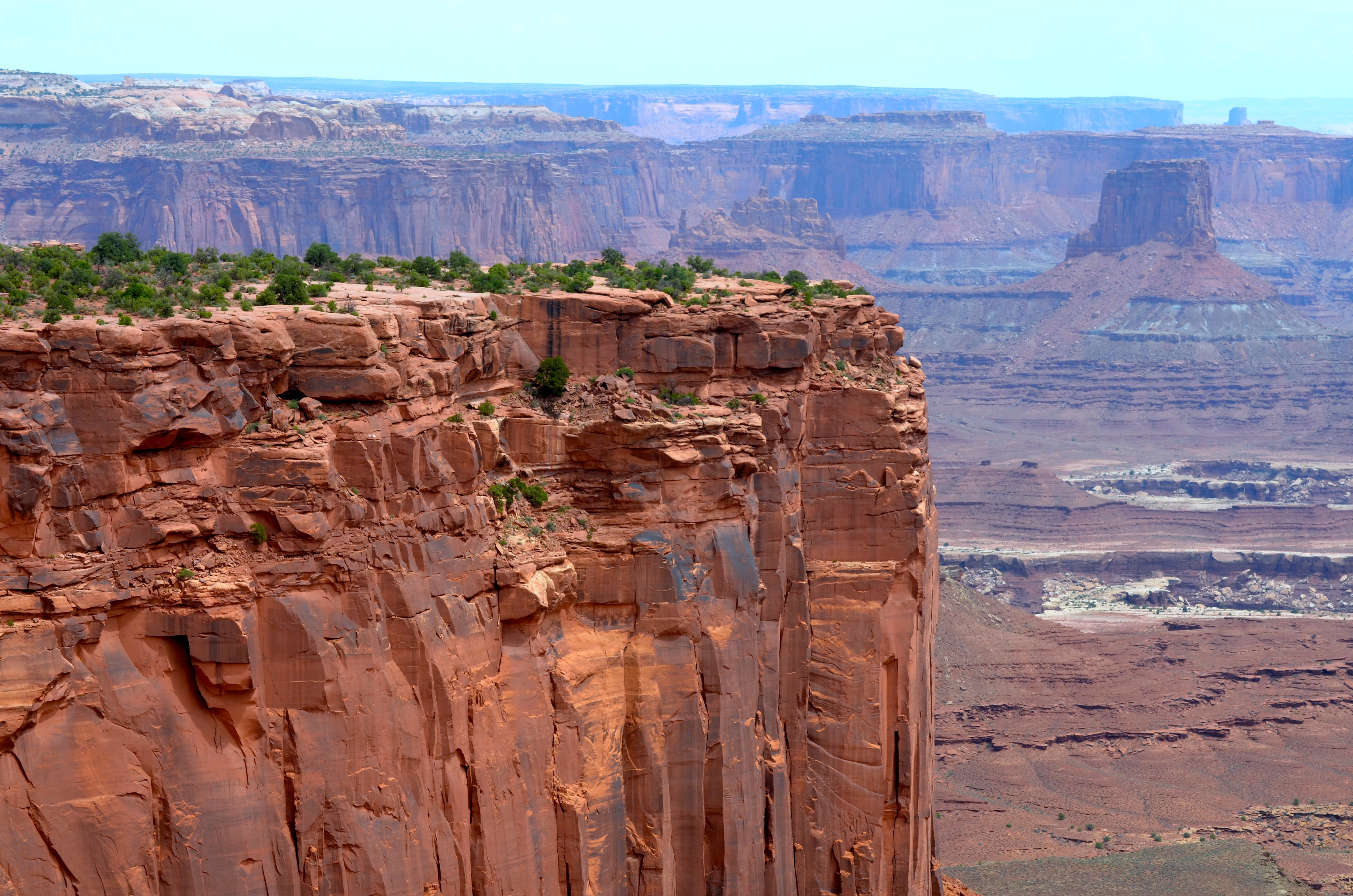 many big horn sheep climb the red cliffs of Canyonland in Utah.