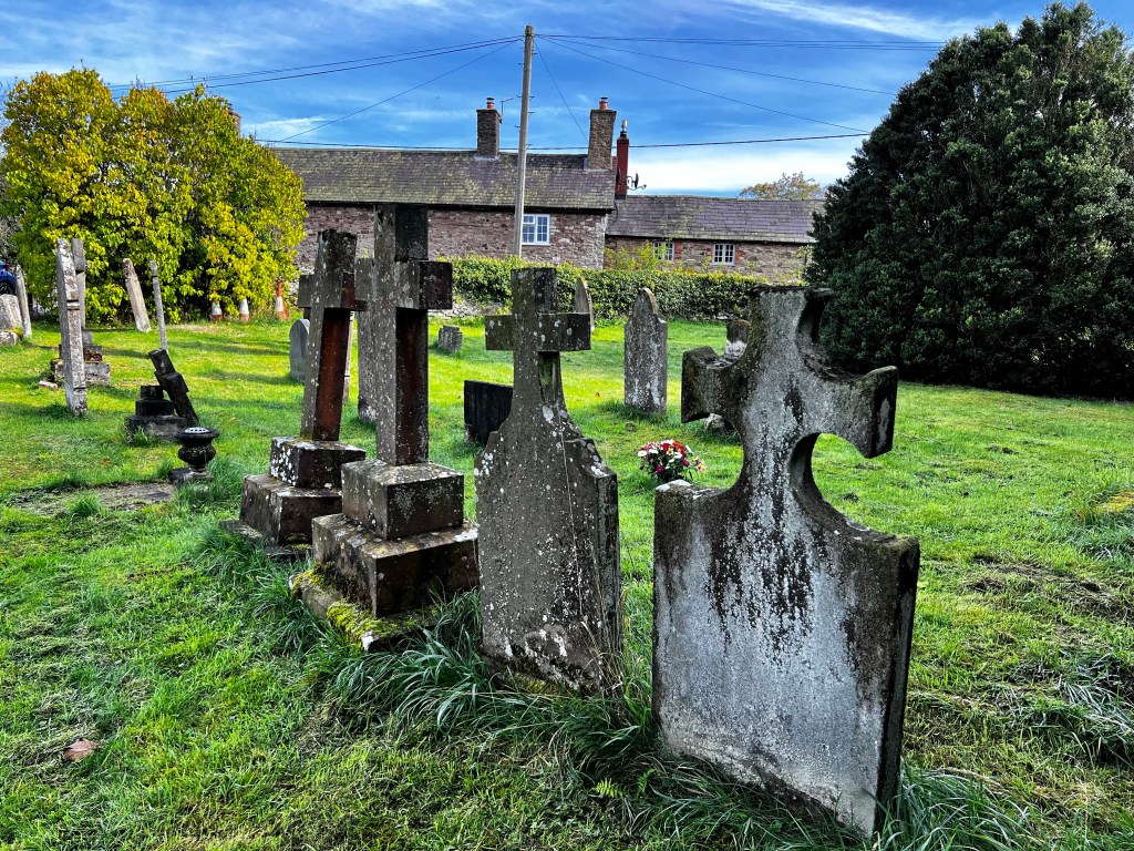 On our second evening in Norbury at The Crown B & B, we heard about a Eucharist service that evening at the St Michael’s and All Angels’ church. Just a short walk from the pub, we grew eager to attend the liturgy and prayers and explore this particular parish as well. Yesterday while at the Norbury Church (which is located more on the outskirts of the village), we had scoured the graveyard for Wilks’ headstones and found only a Jane Wilkes, which we believed to be the daughter of William and Mary, great grandparents times seven of Wayne. Therefore, we were excited to check the graveyard at Saint Michael’s’ before the Eucharist service for more Wilks buried there.