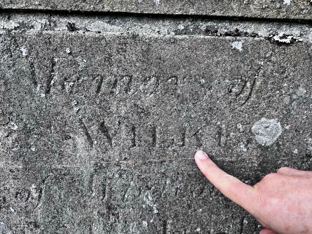 The next morning we walked back to the church and then carefully walked up and down the gravestones’ grassy knolls to read each engraving. At last, Wayne found what he was looking for! William Wilkes. Mission accomplished. Following these little points of light along the way, became the norm for connecting the dots. We did feel the breath of God with each discovery.