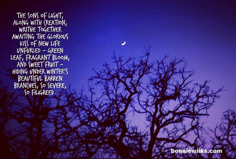 Without fully understanding seasons, we mortals tend only to see that barrenness of the tree in winter or just the fruit of summer. How easily we lose sight of the full cycle and knowledge that the fruitful blooming arrives in season because of the perfect and glorious preparation that winter provides.