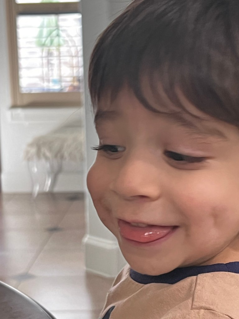 My grandson, Emmett, wiggled and wiggled as I tried to put on his pajamas. His silly mood made us both giggle and fall on the bed with laughter. Then suddenly, Emmett grew quiet and still for a moment, and his eyes gleamed and grew as big as planets.